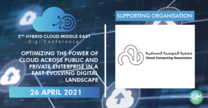 تدعم جمعية الحوسبة السحابية مؤتمر الشرق الأوسط الثاني للسحابة الهجين والذي يقام عبر الانترنت وذلك يوم الاثنين الموافق 26 أبريل 2021.