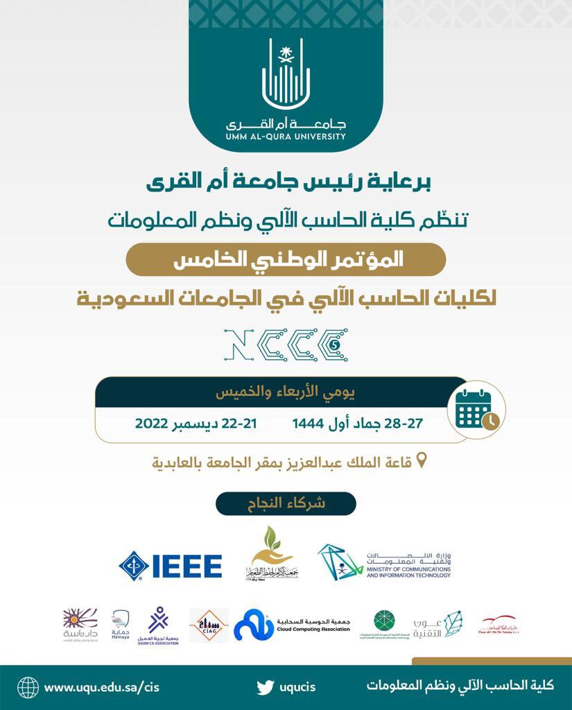 شاركت جمعية الحوسبة السحابية كشريك نجاح في المؤتمر الوطني الخامس لكليات الحاسب الآلي في الجامعات السعودية، بتنظيم كلية الحاسب الآلي ونظم المعلومات في جامعة أم القرى، برعاية رئيس الجامعة أ.د. معدي بن محمد آل مذهب، خلال الفترة 21-22 ديسمبر 2022، تحت شعار “الثورة الصناعية الرابعة”.
