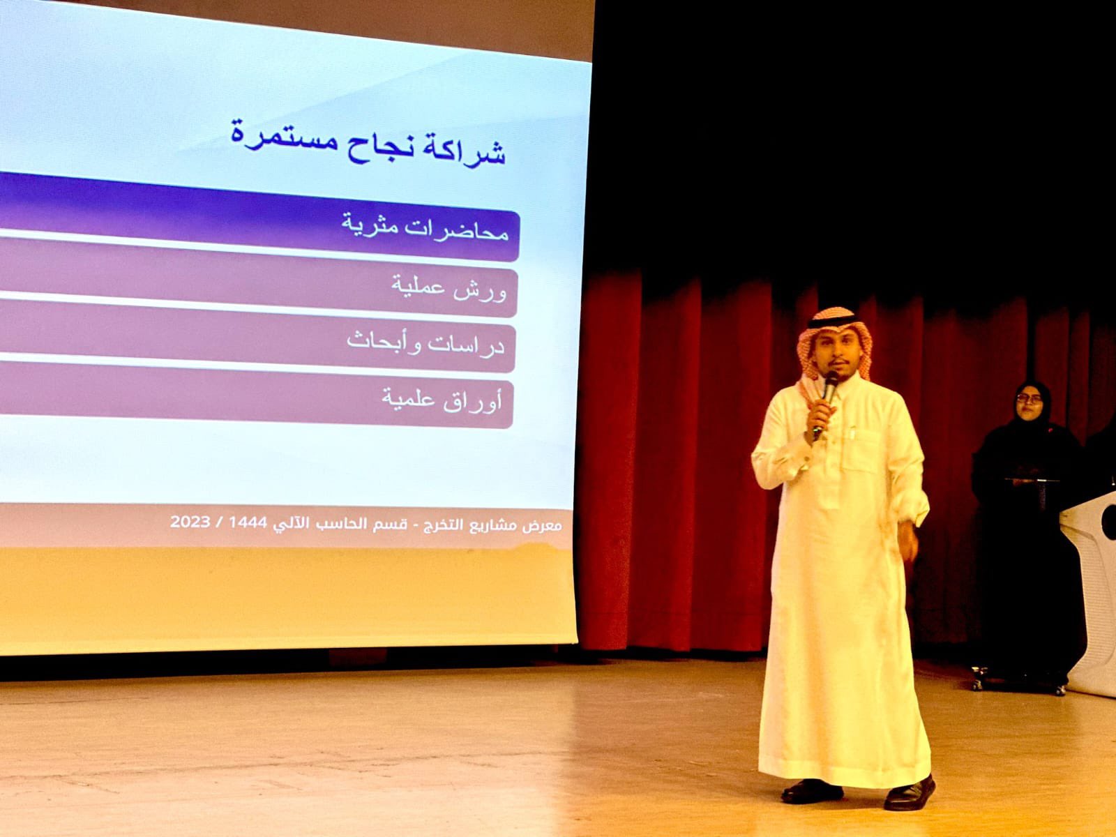 تشرفت جمعية الحوسبة السحابية بتلبية دعوة قسم الحاسب الآلي في كلية العلوم والدراسات الإنسانية بالجبيل، جامعة الإمام عبدالرحمن بن فيصل، لحضور معرض (ماذا بعد التخرج) كشريك نجاح رسمي للمعرض حيث قام كلاً من م. فهد الحامد، ا. عبدالله آل مطلق، م. عبدالرحمن الماجد، م. سلطان الهجلة، و د. ظبية البوعينين بعمل جولة في المعرض للتعرف على مشاريع الطالبات وتقديم الاستشارات في المجال.