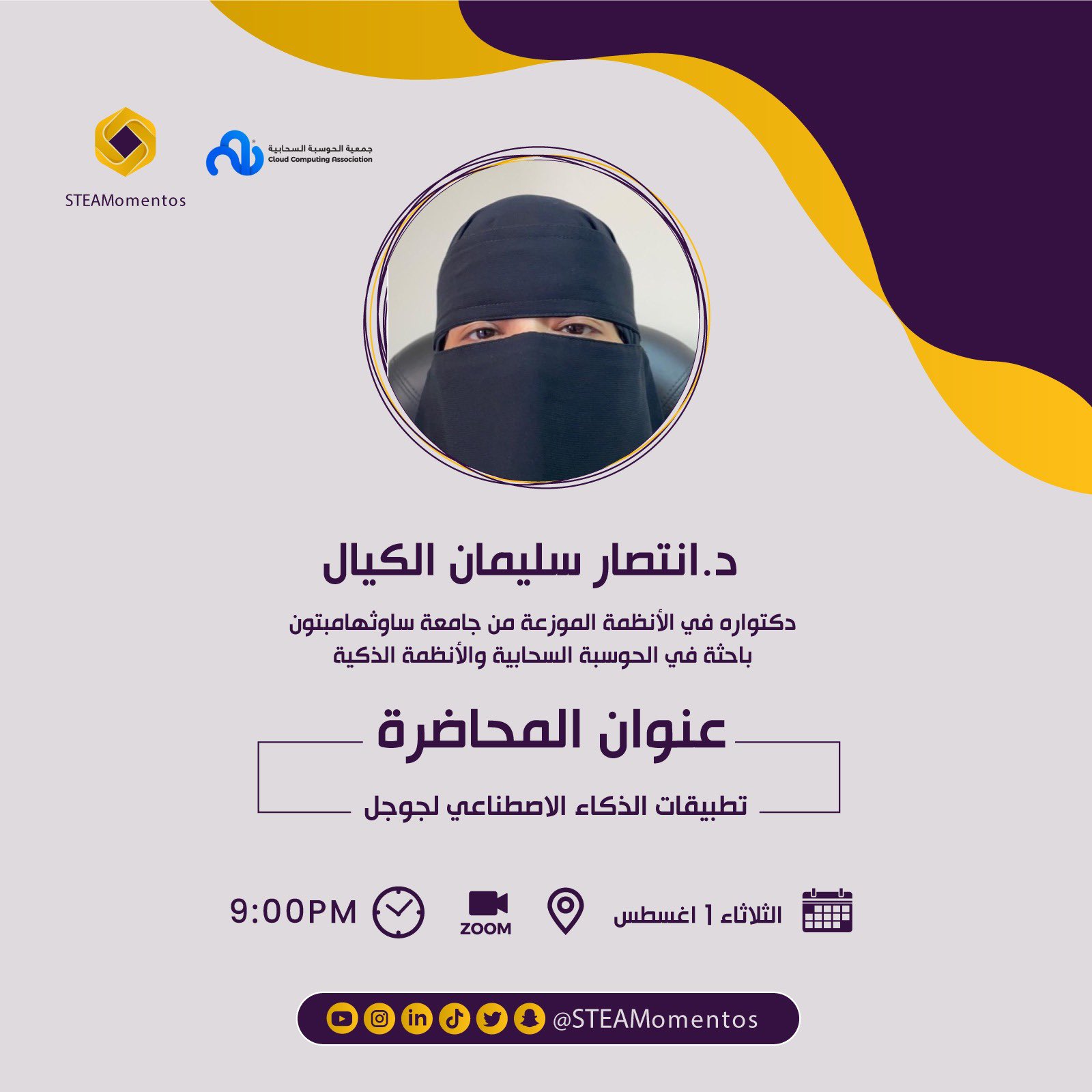 - محاضرة بعنوان تطبيقات الذكاء الاصطناعي لجوجل – تقديم د. انتصار الكيال.