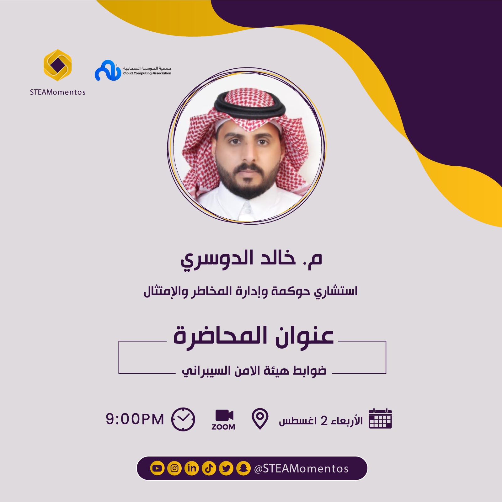 - محاضرة بعنوان ضوابط هيئة الأمن السيبراني – تقديم م. خالد الدوسري.
