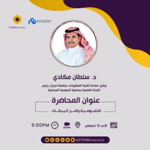- محاضرة بعنوان الخصوصية وأمن البيانات – تقديم د. سلطان مكادي.
